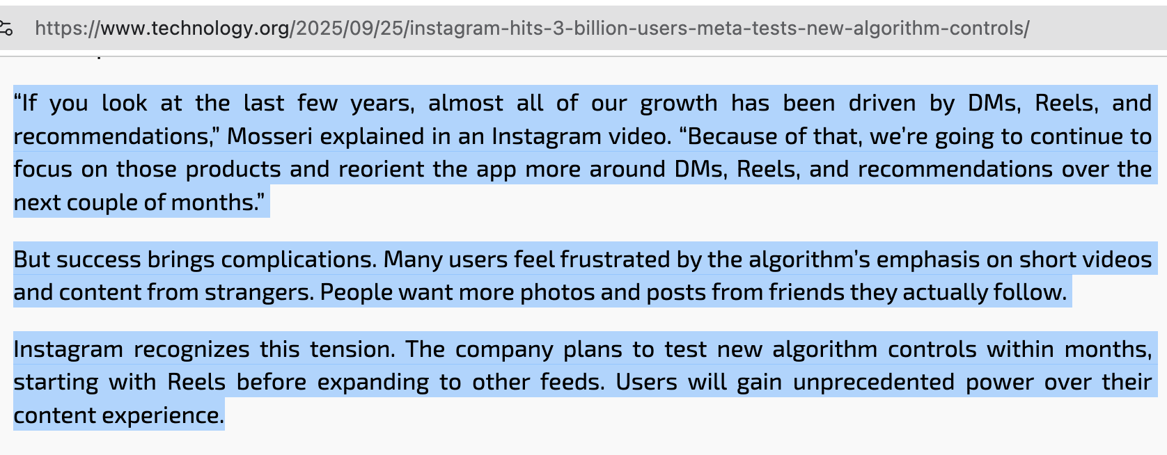 Are we all going to ignore that Instagram is starting to feel how Facebook began to feel in 2016-2018? Still engaging, but somewhat empty and moderately irrelevant? That's because the very experience has changed.
